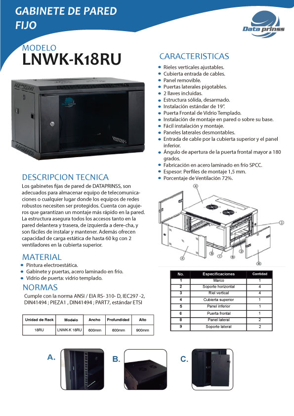 Los gabinetes fijas de pared de DATAPRINSS, son adecuados para almacenar equipo de telecomunicaciones o cualquier lugar donde los equipos de redes robustos necesiten ser protegido.